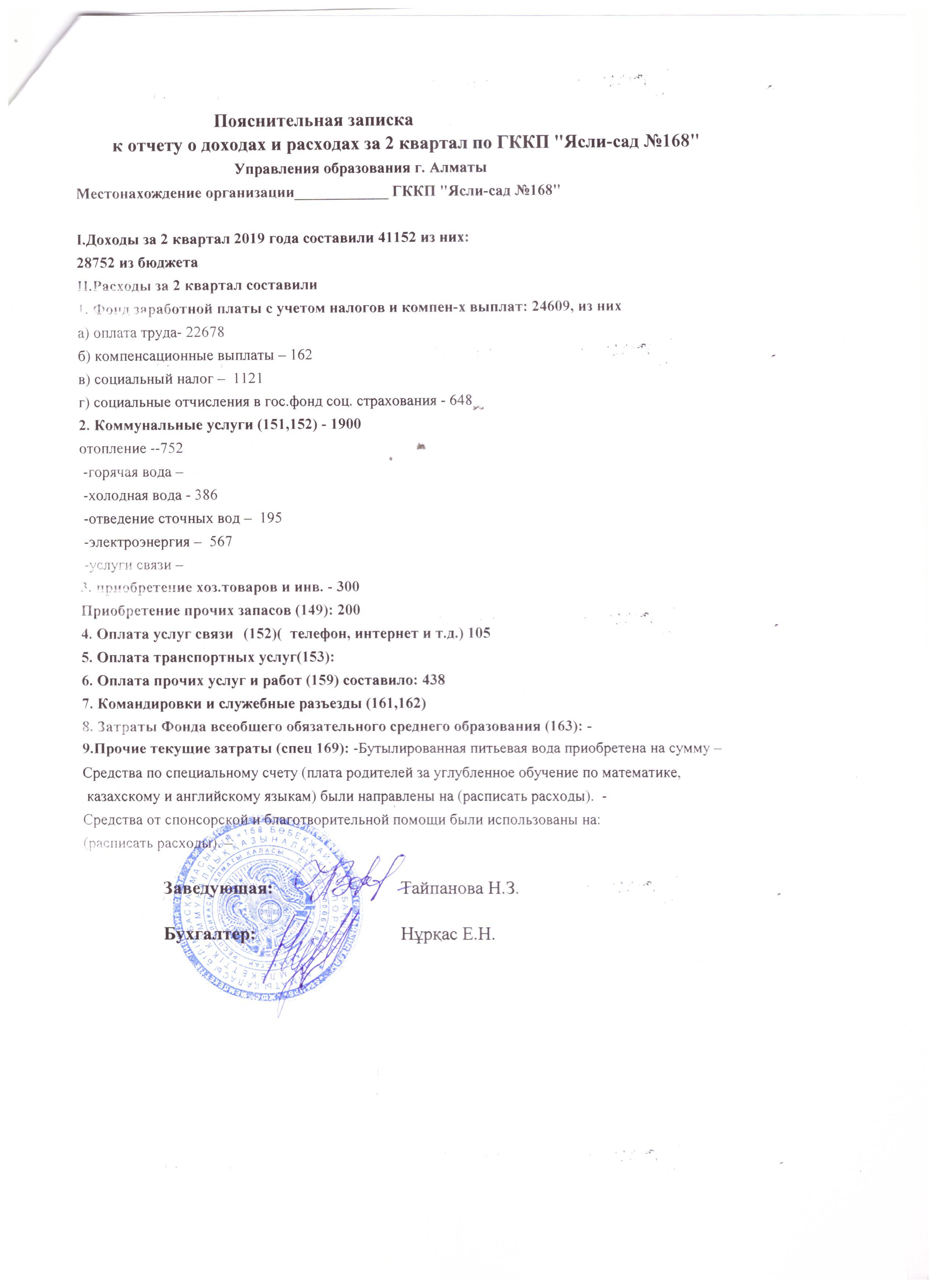 отчет о доходах и расходах за 2 квартал 2019 год » MКҚК «№168 бөбекжай-балабақшасы»